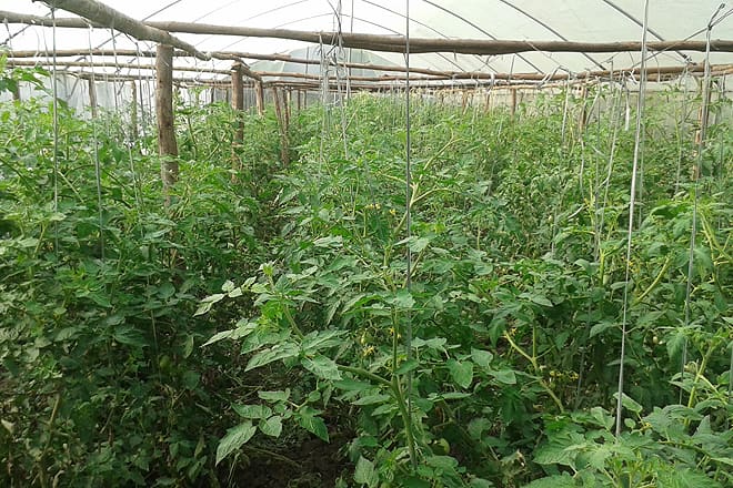 • Local market woman harvesting vegetables in the greenhouse of the center
